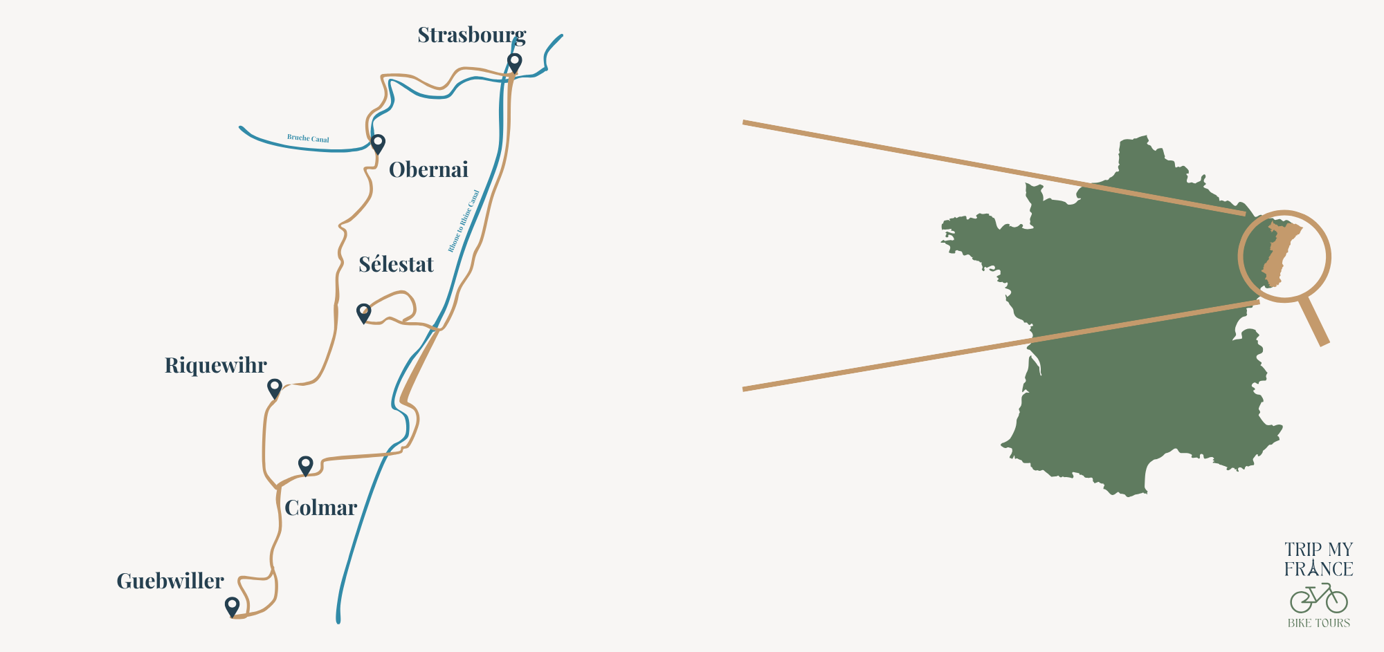 Chaque journée offre une combinaison structurée de vélo, découvertes culturelles et pauses dans des environnements typiques de la région. Le voyage permet d’explorer des villages médiévaux, des zones naturelles préservées et des vignobles reconnus. Vous avez aussi la possibilité de rencontrer des vignerons et de profiter de la gastronomie locale. C’est une manière directe et complète d’aborder l’Alsace tout en bénéficiant d’un rythme confortable et d’un encadrement clair.